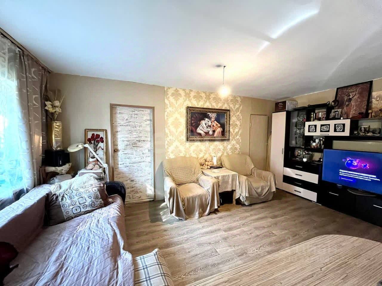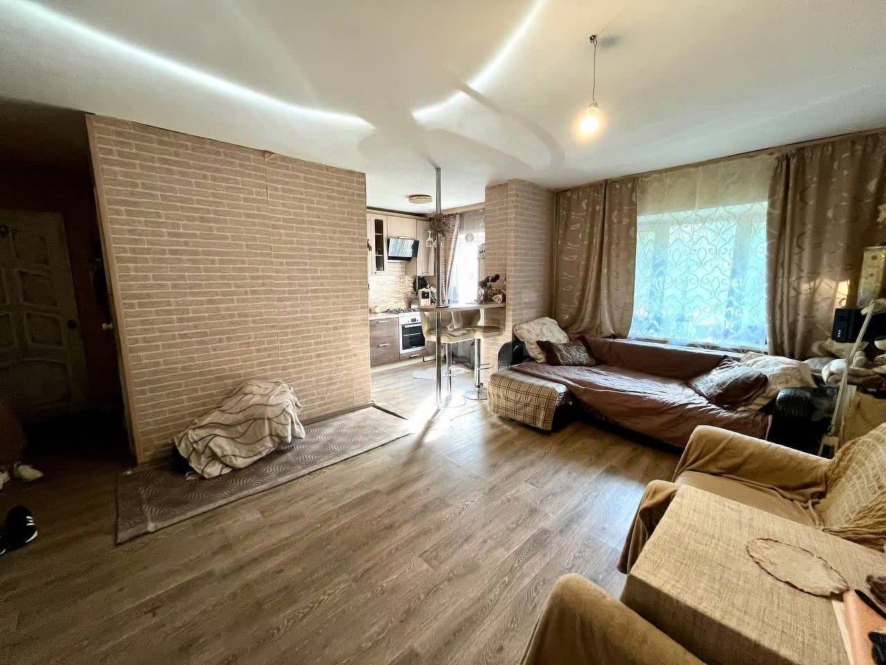 Площадь: 43.2 кв. м. Планировка: Современная совмещенная кухня-гостиная — много места для жизни и приема гостей. Дополнительно: Отдельная кладовая комната, которую легко обустроить под просторную гардеробную. Состояние: Ламинат на полу и современные стеклопакеты ПВХ. Квартира не требует серьезного ремонта — только косметическое обновление под ваш вкус. О доме и районе: Дом расположен в самом сердце тихого и зеленого района с развитой инфраструктурой. Все необходимое — в шаговой доступности: