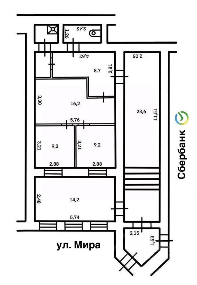 Ранее в нем располагались Сбербанк и нотариус. Успейте забронировать первым, такая локация не пустует долго!