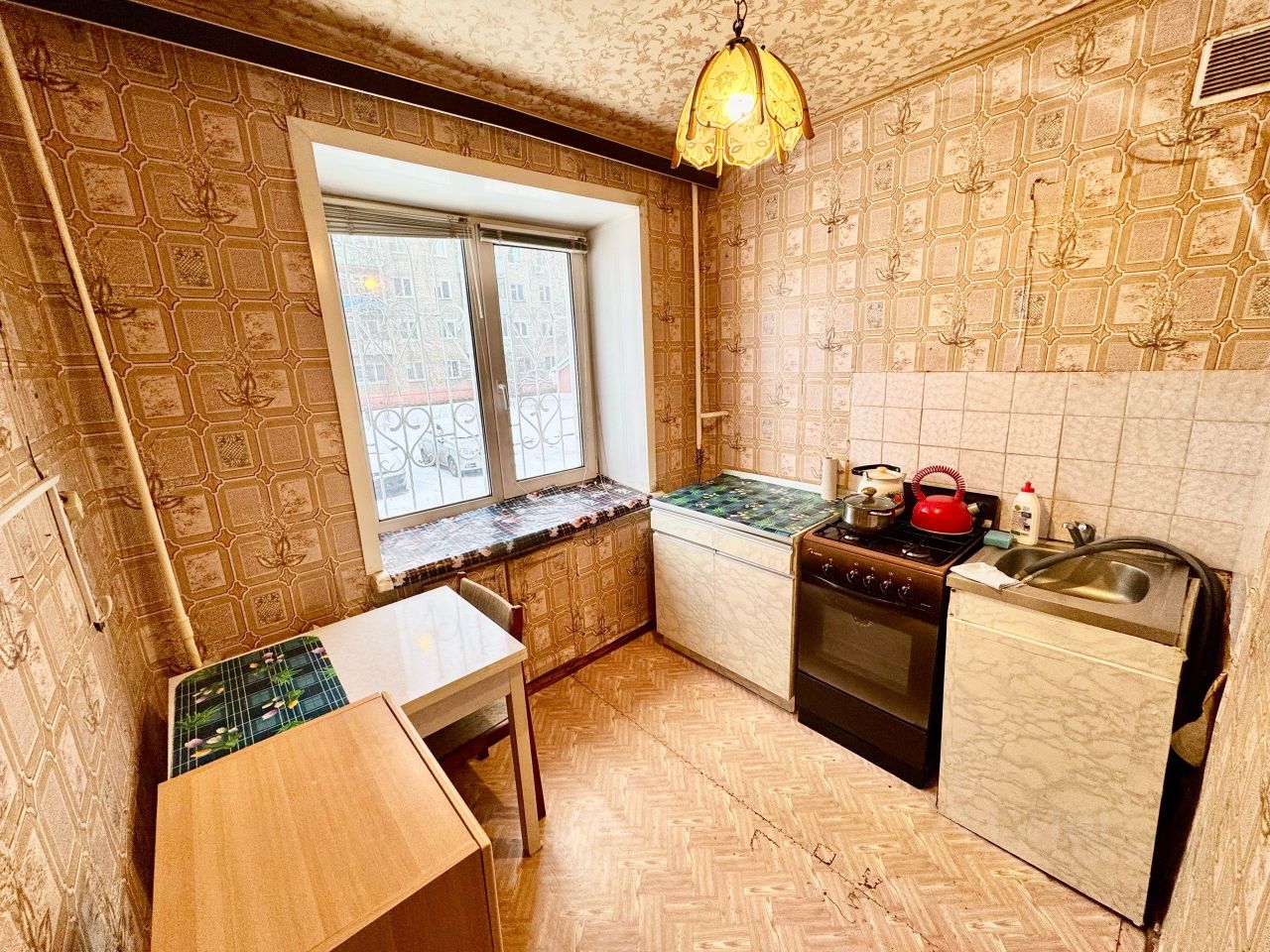 Квартира расположена на 1 этаже 5-ти этажного кирпичного дома.