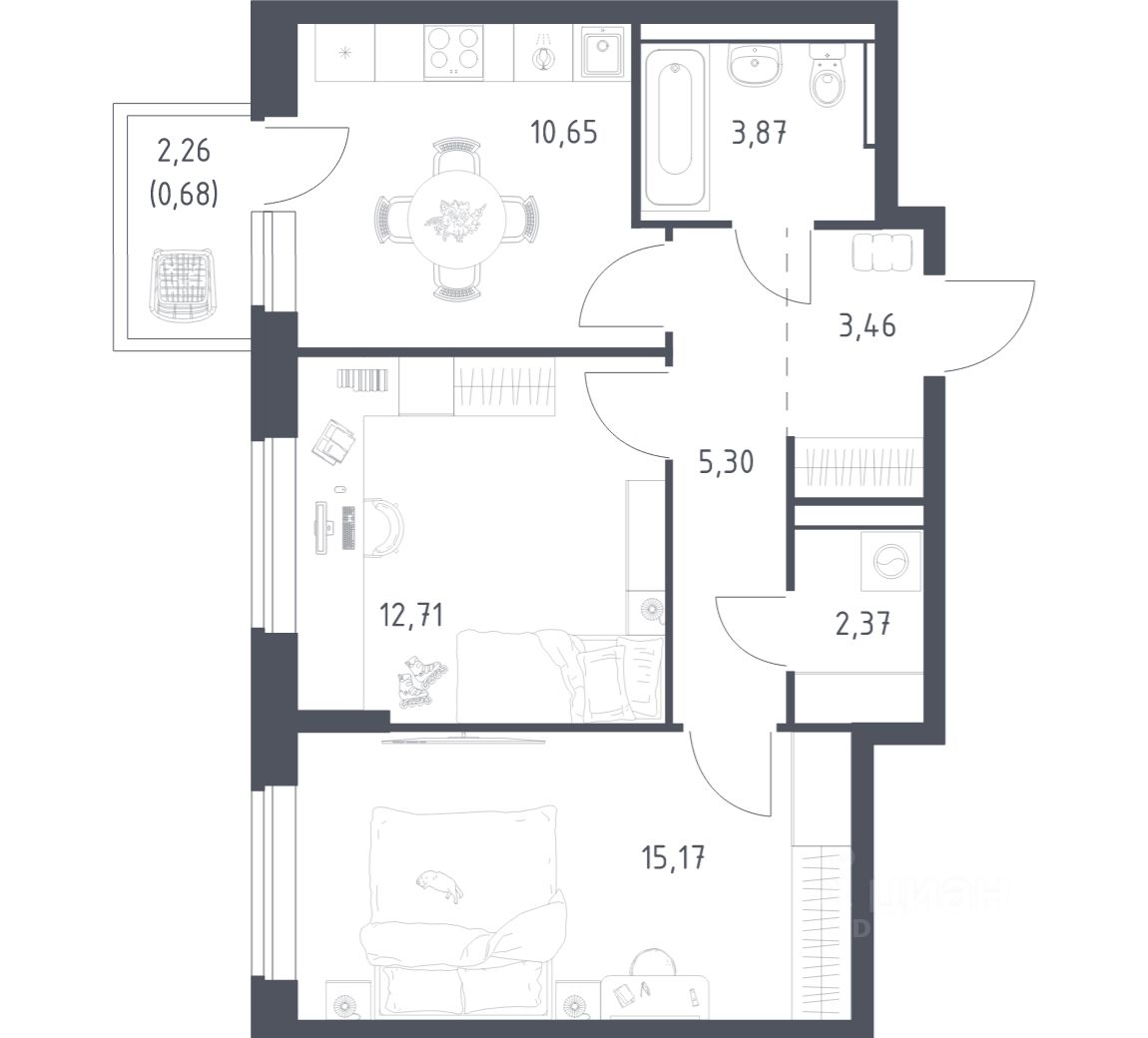 Строим кварталы для жизни с заботой о будущем. Предлагается 2-комнатная квартира комфорт-класса площадью 54,21 кв.м в корпусе 3.2 на 11-м этаже, в жилом комплексе ''Егорово Парк''.