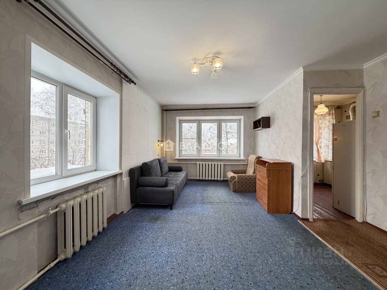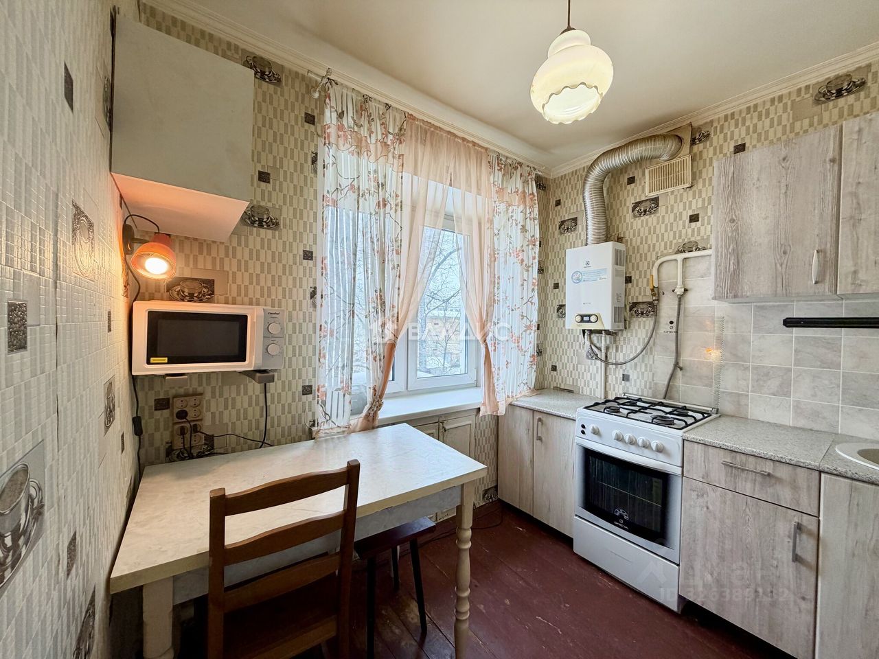 Квартира чистая, без посторонних запахов, угловая, без балкона. Окна пвх, газовая колонка автомат. Есть все необходимое для комфортного проживания. Из мебели в квартире: кухонный гарнитур, стол, стулья, раскладной диван, комод, кресло, настенная система хранения вещей, стенка в прихожей для верхней одежды. Из техники: холодильник, стиральная машина автомат, микроволновая печь. Есть тёмная комната под гардеробную или хозяйственные вещи.